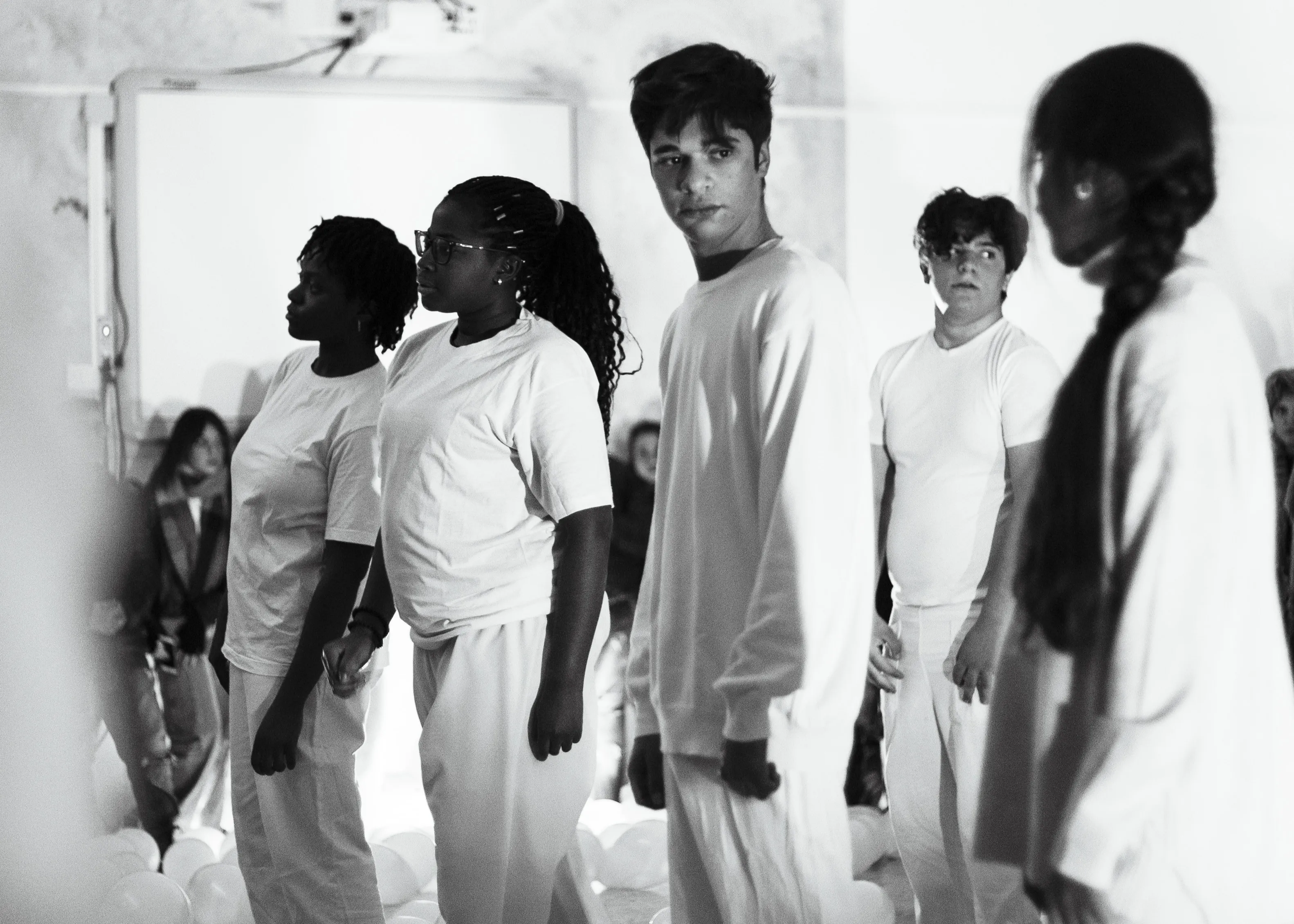 Dieci ragazzi provenienti da quattro continenti danno vita a un’esperienza teatrale unica: dieci monologhi scritti e interpretati da loro stessi, in cui affrontano le grandi emergenze dell’attualità. Ispirandosi al Moby Dick di Herman Melville, simbolo di ricerca e ossessione, i giovani protagonisti trasformano la scena in un luogo di dialogo e improvvisazione, rompendo la tradizionale barriera tra palco e pubblico. Un viaggio di parole, corpi ed emozioni che dimostra come le nuove generazioni possano confrontarsi con il reale e farsi voce del presente e del futuro. La balena bianca è uno specchio che rimanda lo sguardo di tutti noi, una chimera irraggiungibile, una verità impossibile da afferrare.